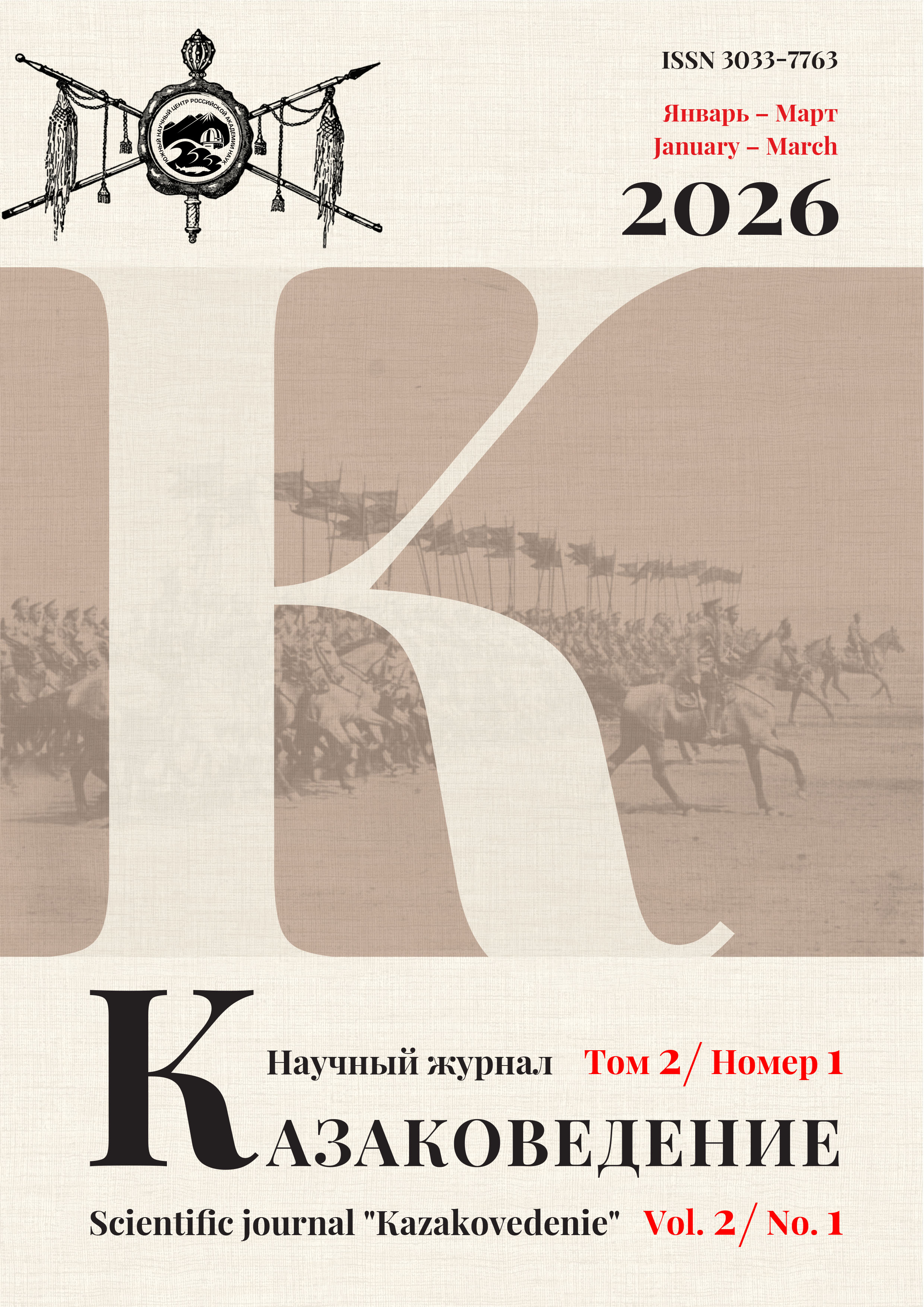 "Научный журнал “Казаковедение” (online-ISSN 3033-7763) – это международный рецензируемый научный журнал открытого доступа. "Научный журнал “Казаковедение” печатает оригинальные, нигде более не опубликованные работы (обзорные статьи; научные статьи; краткие научные сообщения; публикации новых ценных источников; научная жизнь: обзоры, анонсы конференций; рецензии на книги) по разным аспектам истории казачества, а также материалы для казачьего биографического словаря. Приветствуются исследования по тематике: археология и история материальной культуры, история, историография, источниковедение и археография, этнология, фольклористика, этнолингвистика. Журнал принимает также статьи по политологии и геополитике (по согласованию с главным редактором).